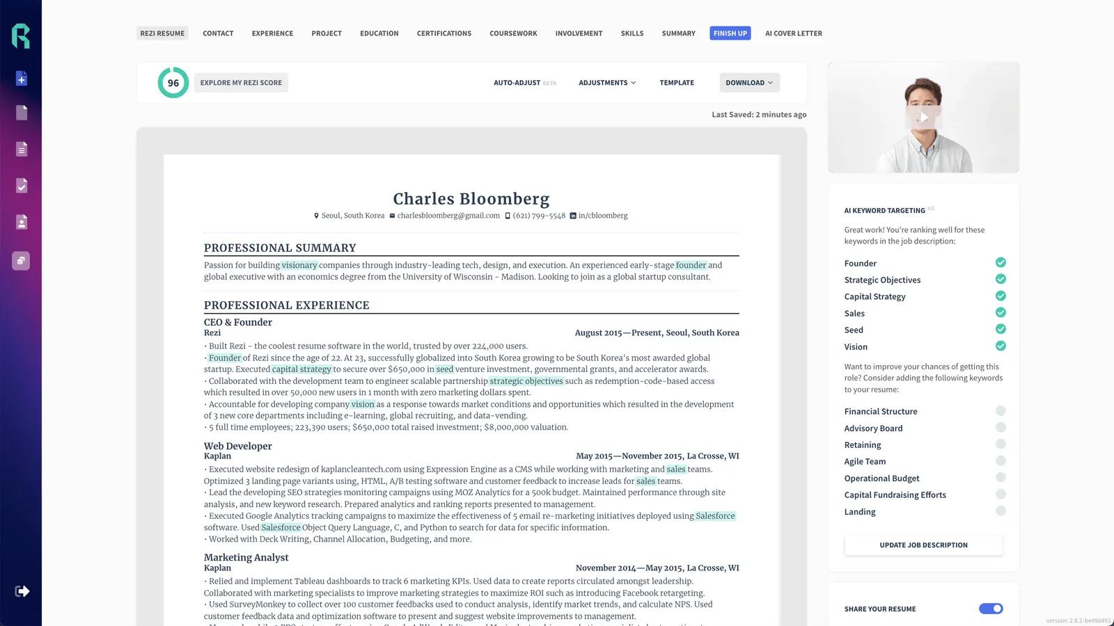 Rezi.AI uses advanced AI to analyze job descriptions and understand the keywords that employers are looking for. The tool then helps you incorporate these keywords into your resume in a meaningful way, drastically improving the chances of your resume being picked up by Applicant Tracking Systems (ATS).